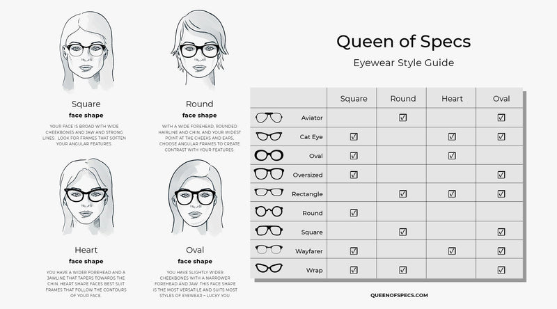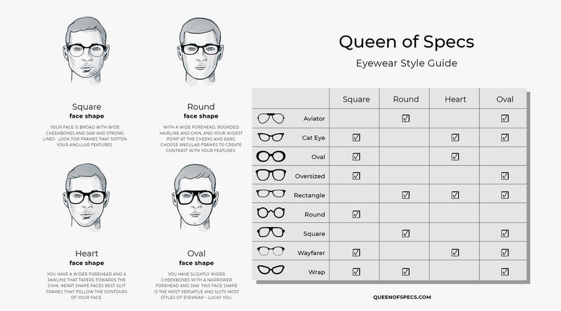 To gauge your face shape, stand in front of the mirror and review your facial features to determine which of the shapes you resemble. Take a look at the guide below to see which frame styles will suit you best, then browse our collections via that shape.... but, this is just a guide - if you really like the look of a pair of frames then own it!